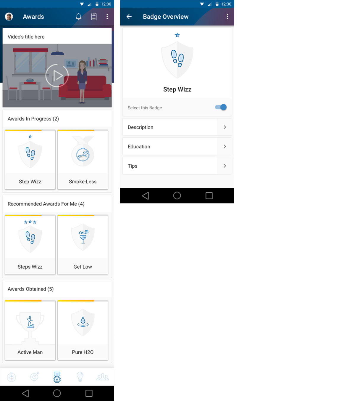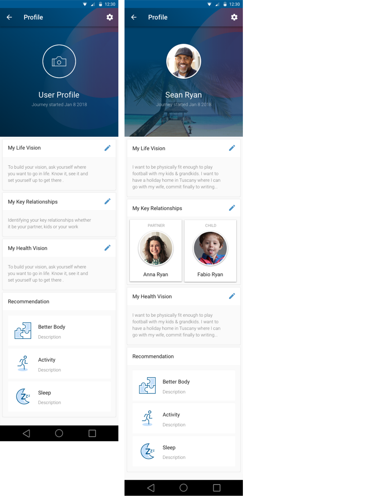 An intuitive UI based on four pillars — Recovery, Nutrition, Physical Activity, and Wellness Mindset.