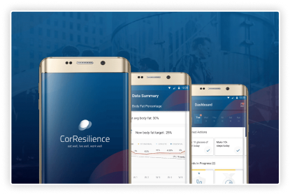 CorResilience began as a vision to drive personal and organisational resilience. Through collaborative workshops, we transformed this concept into a dynamic personal resilience application. This digital platform enables a company's workforce to achieve sustainable lifestyle changes while reducing long-term disease risk. It represents an evolution of CorPerformance's decade-long experience in developing coached behavioural change processes for the corporate market across Europe, the Far East, and North America.
