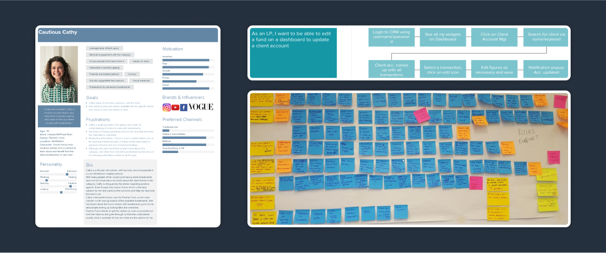 Next, storyboarding is employed to visualise user interactions with the product, followed by persona creation and mapping out user journeys to understand user needs and behaviours.