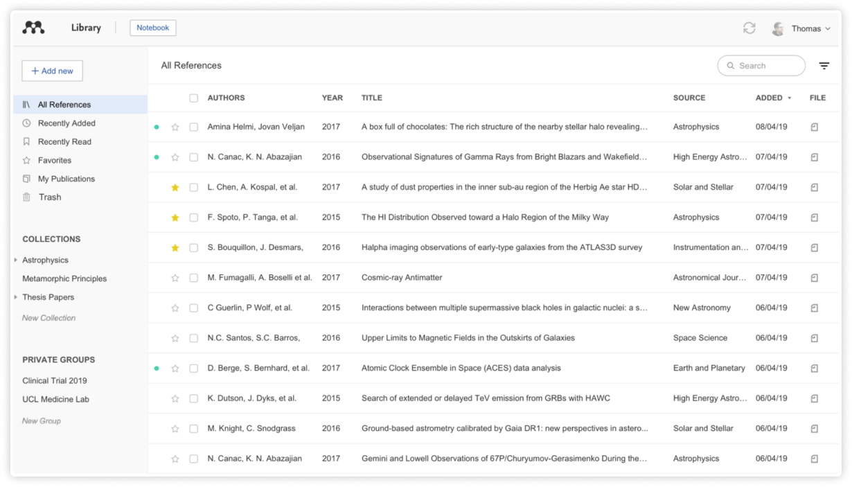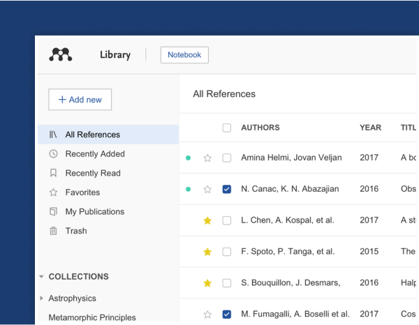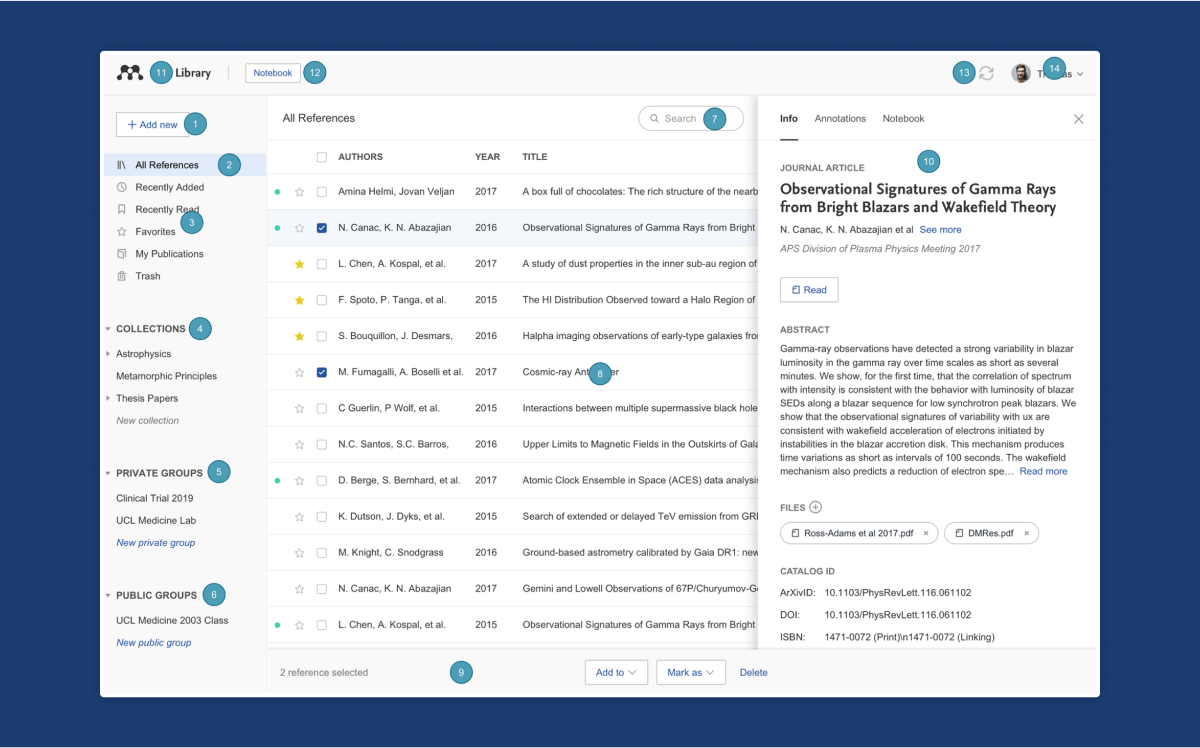 The library helps to easily organise and retrieve all references in one place using collections and tags and keyword search and filtering.