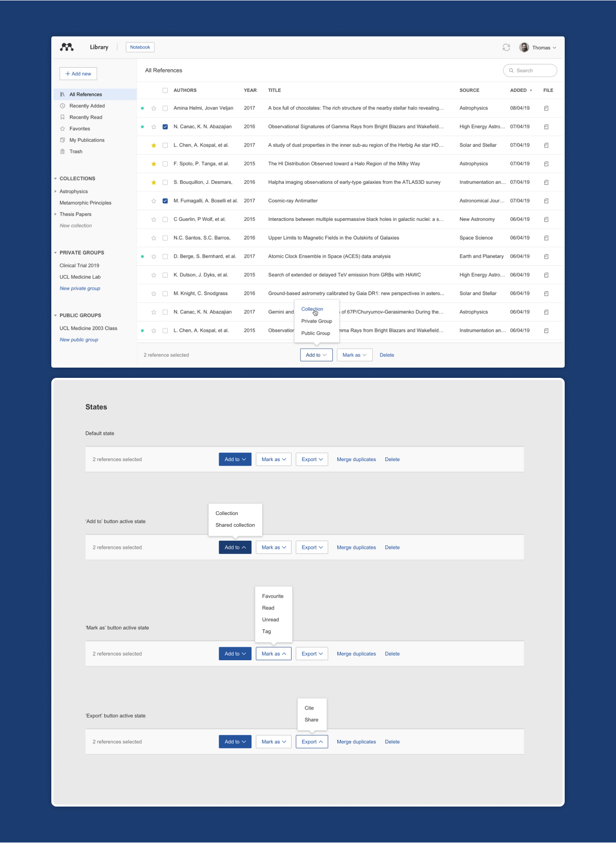 Our reference management system delivers a straightforward organisational experience. The interface works seamlessly across desktop and web platforms, featuring an intuitive collections and tags system for efficient reference organisation, alongside comprehensive search and filtering tools.