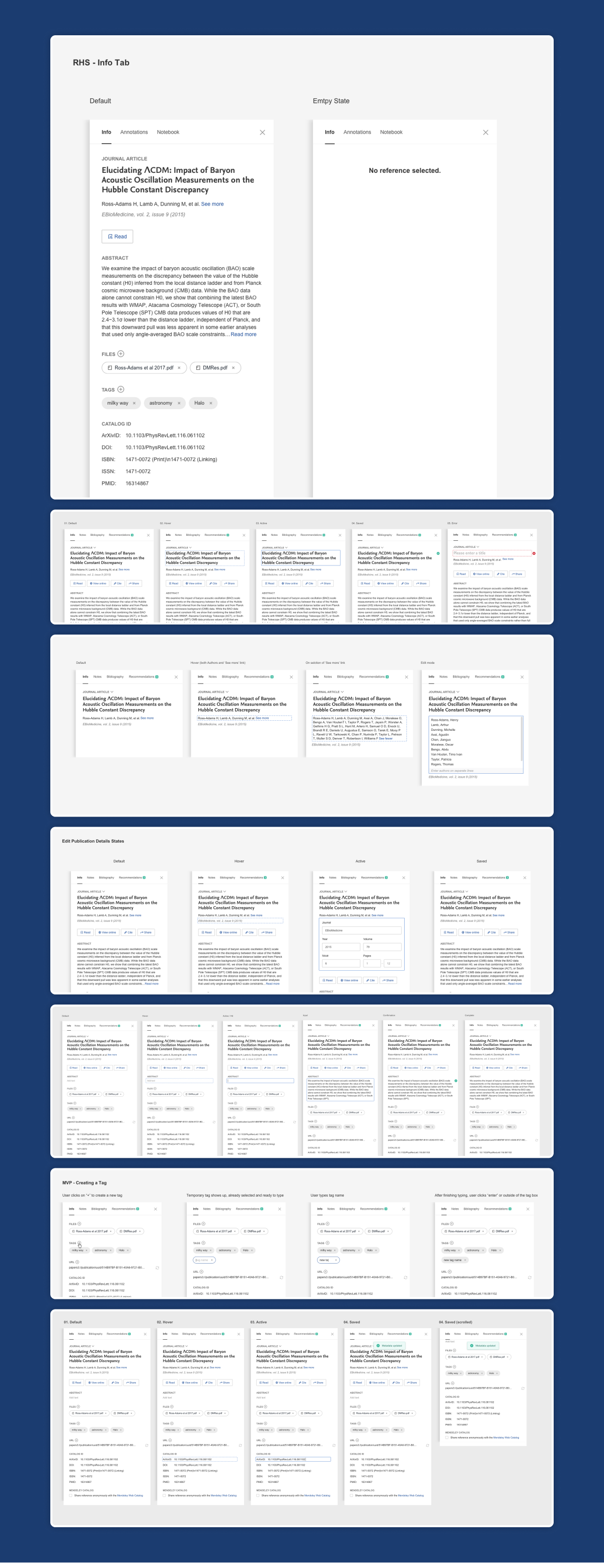 Select a reference in the library table to view the metadata in the info panel. Library - Select